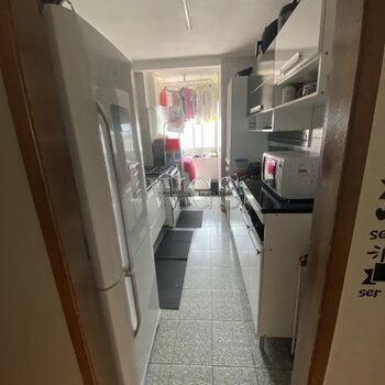 Cozinha funcional, com armários e ótimo aproveitamento de espaço