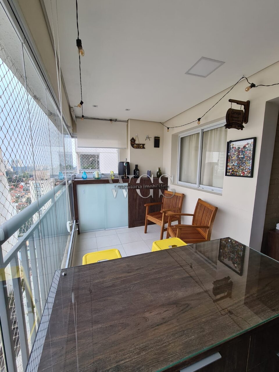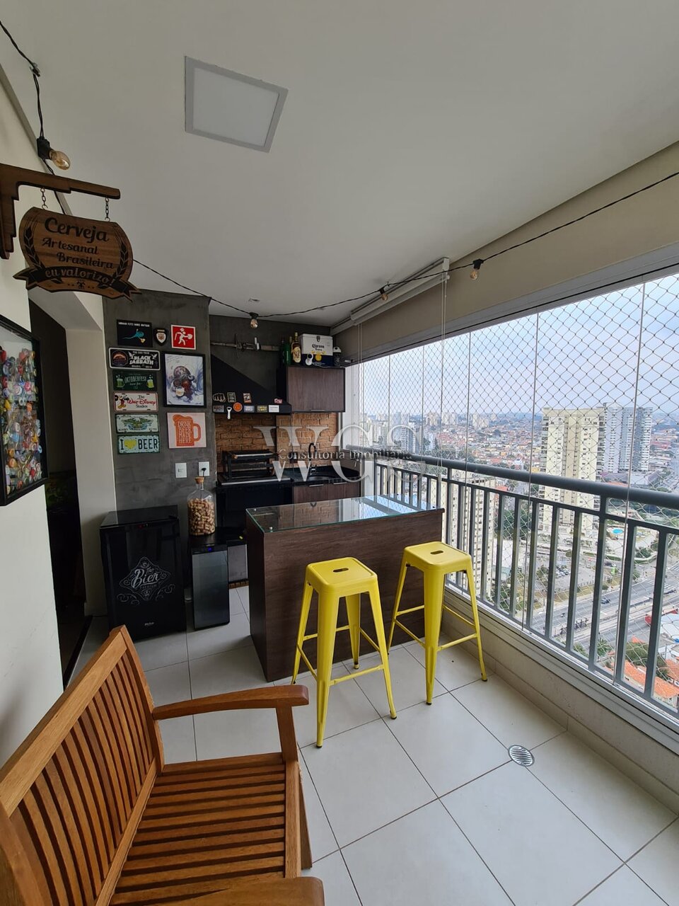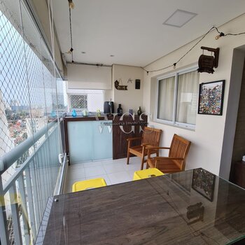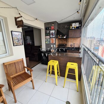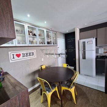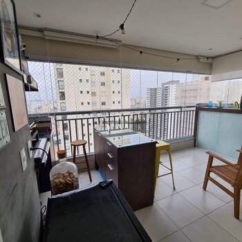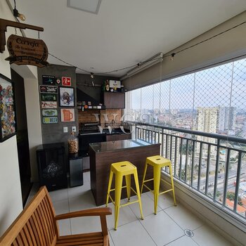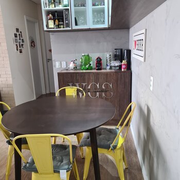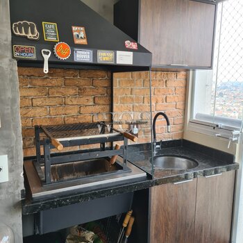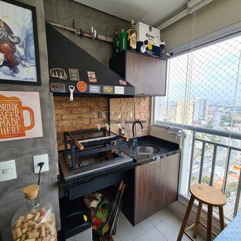 Linda varanda gourmet, ideal para receber amigos e familiares, integrada ao living e com excelente aproveitamento de espaço.