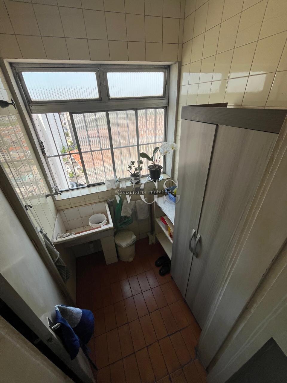 Área de serviço separada, com espaço para máquina de lavar