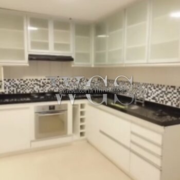 - Cozinha planejada com armários e bancada em granito